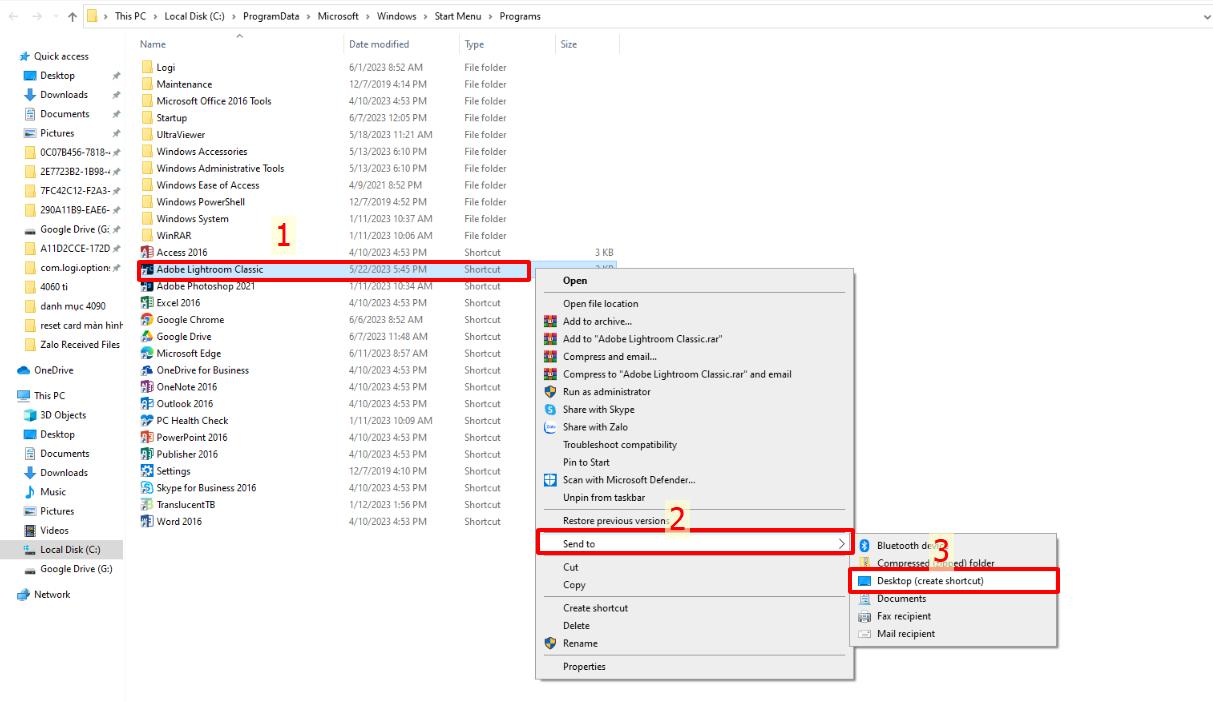 Bước 2: Chọn Send to → Desktop (create shortcut).