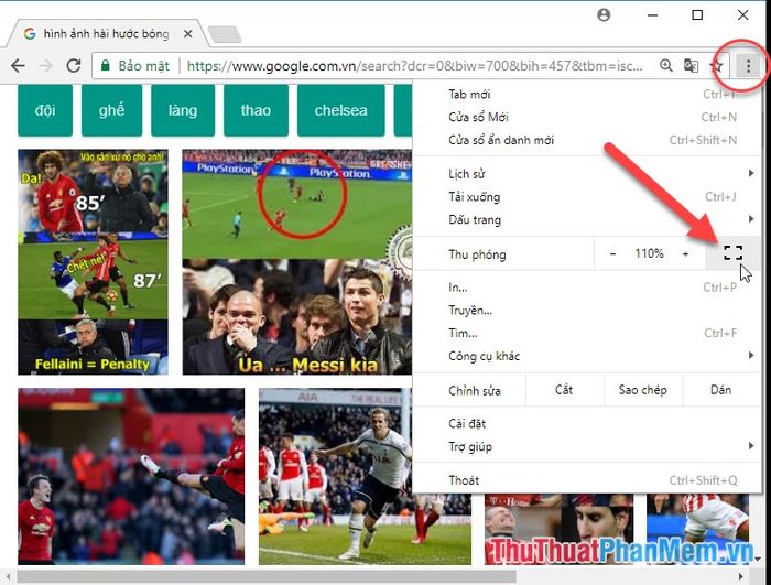 - Cách 2: Truy cập vào trình duyệt, nhấp vào biểu tượng tùy chọn ở góc phải màn hình và chọn biểu tượng Full Screen để tận hưởng trải nghiệm toàn màn hình.