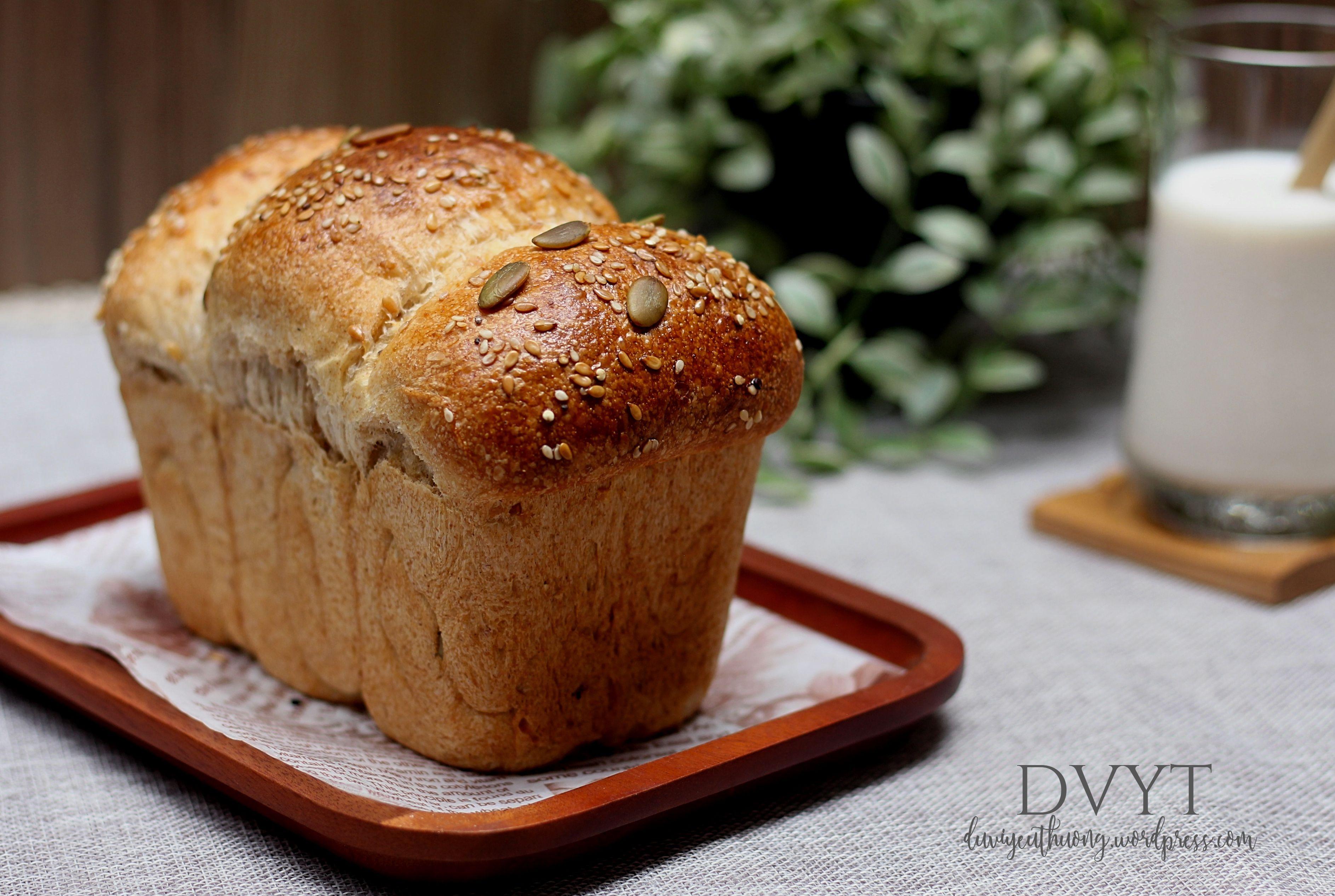 Đến lúc này, thì mình chắn chắn “chốt sổ” đây là công thức bánh mì sandwich có lượng bột nguyên cám rất cao (chiếm từ 20-50% tổng lượng bột trong 1 công thức) ngon nhất mà mình đã canh chỉnh, thử đi thử lại các tỉ lệ khác nhau không biết bao nhiêu lần. Tất nhiên, bánh mình làm luôn dùng bột cái (sourdough) vì mình mê hương vị đậm đà và độ ẩm mượt, đàn hồi của nó mà không loại men nào sánh được dù là spong hay tangzhong. Nếu không có bột cái, các bạn có thể thay bằng 5gr dried yeast (men công nghiệp) nhưng chỉ thay và thử khi bạn thật sự có kinh nghiệm với bread thôi vì “quy đổi lượng men” chỉ mang tính tương đối. Khi bắt tay vào làm, giữa sourdough và dried yeast là 2 loại men có độ nở nhanh chậm vô cùng cách biệt, cách đánh bột, cách ủ bột, cách thử bột để biết độ lên men cũng cần thao tác khác nhau.