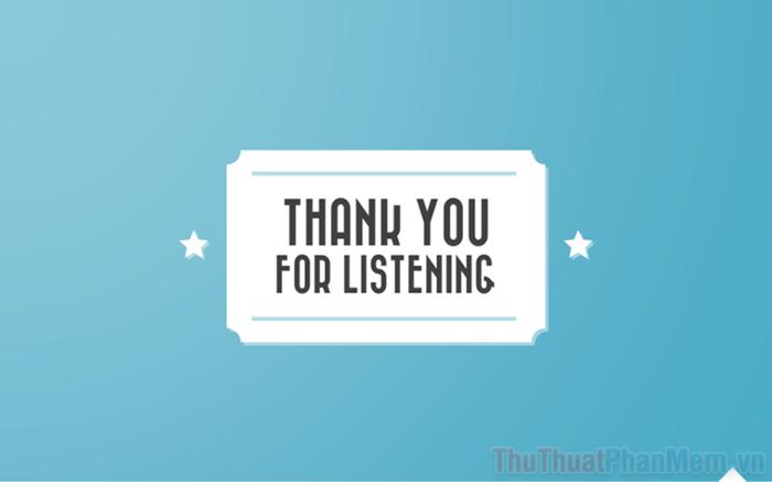 'Thank You For Listening', lời tri ân chân thành dành cho người nghe, giúp tăng tính chuyên nghiệp cho bài thuyết trình.